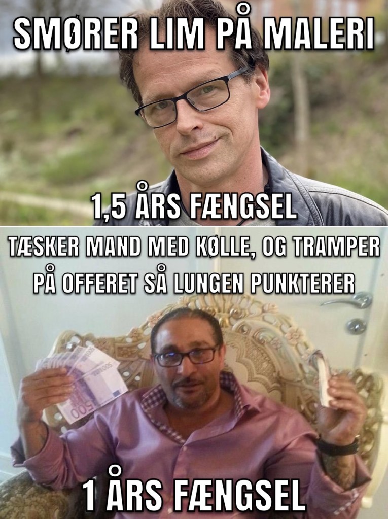 Denne dom bør naturligvis sammenlignes med andre domme: En mand voldtager et mindreårigt plejebarn flere gange: 6 måneders fængsel. To p-personer begår gruppevoldtægt imod en 13-årig pige: 1½ års fængsel En kendt multikriminel sigøjner tæver en mand, så hans lunger punkterer: 1 års fængsel.