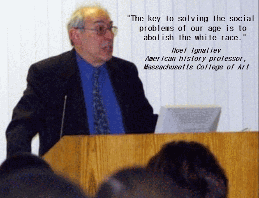 Tag ikke fejl: Vi har tænkt os at blive ved med at banke de døde hvide mænd, og de levende, og også kvinderne, indtil den sociale konstruktion, der kaldes “den hvide race”, er ødelagt – ikke “dekonstrueret”, men ødelagt. Noel Ignatiev i sit tidsskrift Race Traitor
