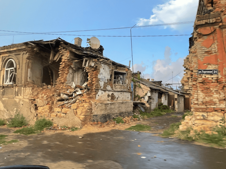 The city itself is also a pile of ruins. Some new apartment blocks have been built, a single street has been restored in places. There are a few restaurants, but no functioning hotel. As there is a curfew at night, we had to find a place to sleep. Somebody knew where there was a microscopic apartment for rent by the day in what can only be described as a ruin. It was a Khrushchev-time construction of the lowest quality, what is known in Germany as Plattenbauten, basically stacked concrete slabs. Although the neighborhood was relatively intact, it had been badly damaged. The slabs had obviously shifted. There was only light in the apartment itself on the 5th floor with the help of a cable pulled from outside, not on the stairs. The balcony had been blown off, the windows were new. In addition, the bedding was full of bed bugs, but that was hardly the fault of the war. That vermin can withstand anything. But at least it was partly indoors. It was obvious that these blocks would be restored. In fact, they probably should have been demolished. Otherwise the city looks like Berlin in 1945. You can restore and build new, but where are the jobs? They’re gone until Azovstal can be put back into operation. But of course, there is also a lot of work in the construction industry – at least for a while. And for the record, people here are also Russians, not Ukrainians – and they do not want to be “liberated” by Zelensky under any circumstances.