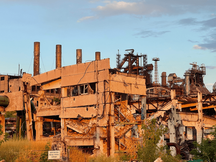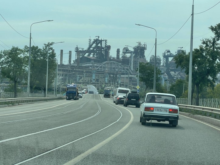 After a short visit, we continued via Dzhankoi to Melitopol and Mariupol, one of the places where the war raged most violently. The city’s main workplace was Azovstal, a combination of a mine and a steel mill where Ukrainian terrorists had housed in four-story underground mine tunnels and forced the city’s population down with them as hostages. Azovstal is a huge area of twisted metal, rubble, railroad cars, etc. Cleaning it up will take many years. Volunteers have already started slowly. Weapons, ammunition and bodies are found every day. My companion remarked that it smelled of death – and she was right.